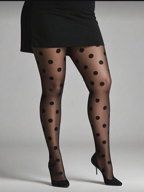 Medias negras semitransparentes con lunares, diseñadas para realzar la pierna y acompañar curvas reales sin apretar ni marcar. Se adaptan al cuerpo, estilizan y elevan cualquier look con ese punto descarado que no se puede fingir.