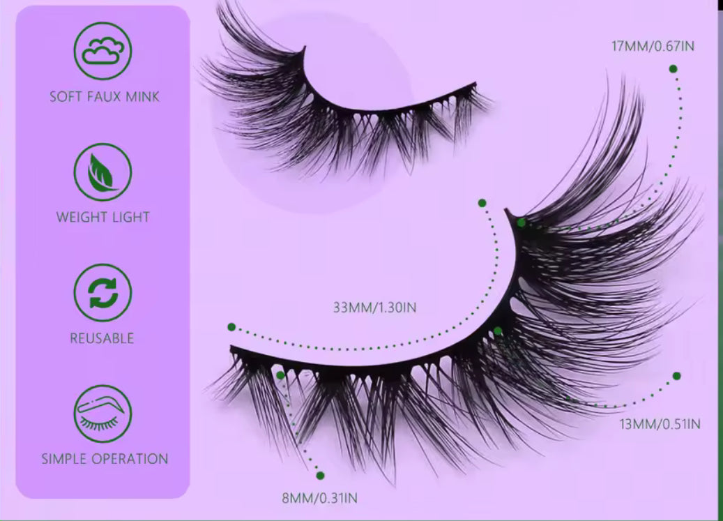 Estas pestañas 8D efecto ojo de gato vienen en un pack de 5 pares con volumen grueso, acabado esponjoso y fibra de visón sintético suave que se siente ligera, pero se ve poderosa.