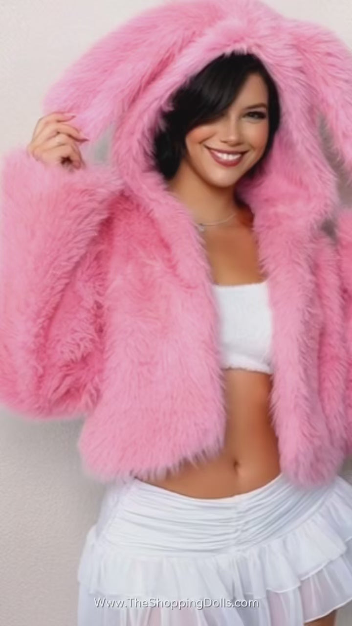 Abrigo de pelo rosa con orejitas